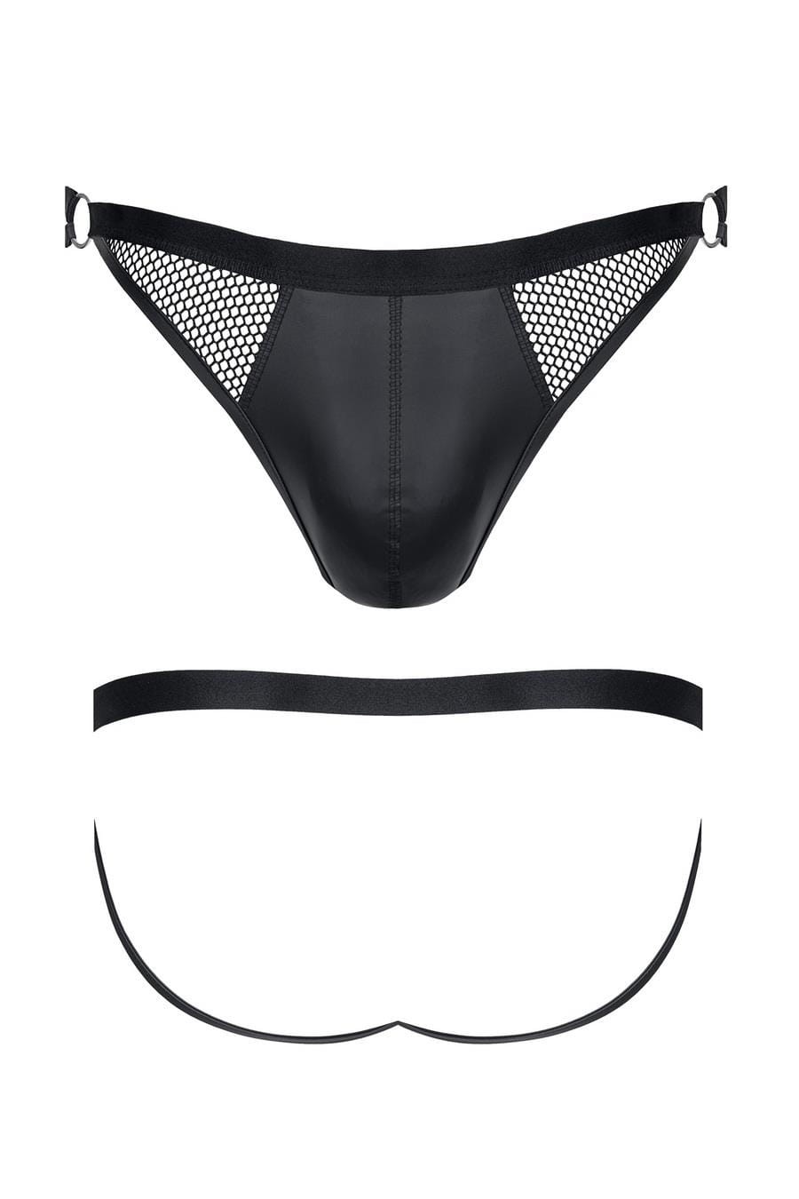 Męskie figi z wetlooku z otwartym tyłem i dekoracyjnym elementem z boku XXL