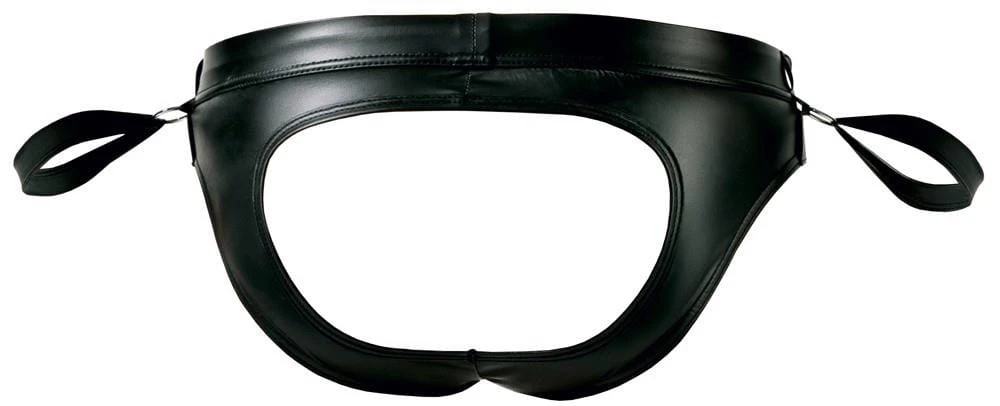 Te slipy bez pośladków z kolekcji Svenjoyment Bondage wyróżniają się modnym, matowym wykończeniem, które efektownie podkreśla sylwetkę. Po bokach znajdują się metalowe pierścienie, do których przymocowane są dwa regulowane paski typu kajdanki z rzepami, dodające całości charakteru i funkcjonalności. Elastyczny materiał zapewnia dobre dopasowanie i komfort noszenia.
