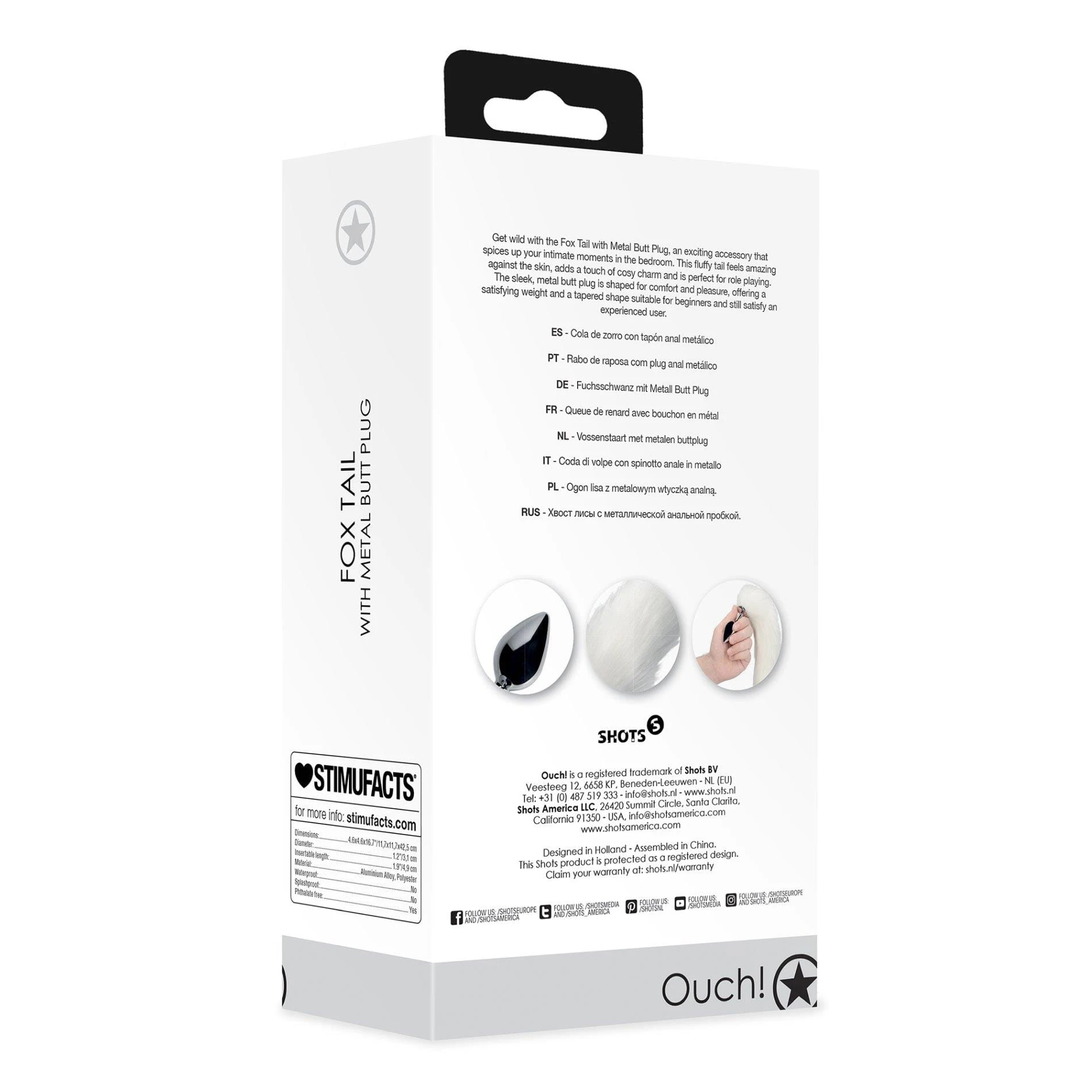 Daj się ponieść dzikości z Fox Tail z Metalowym Korkiem Analnym, ekscytującym akcesorium, które urozmaici Twoje intymne chwile w sypialni. Puszysty ogon doskonale odczuwany na skórze, dodaje przytulnego uroku i jest idealny do zabaw w odgrywanie ról. Elegancki metalowy korek analny został zaprojektowany z myślą o komforcie i przyjemności, oferując satysfakcjonującą wagę i zwężony kształt, który jest odpowiedni zarówno dla początkujących, jak i doświadczonych użytkowników.