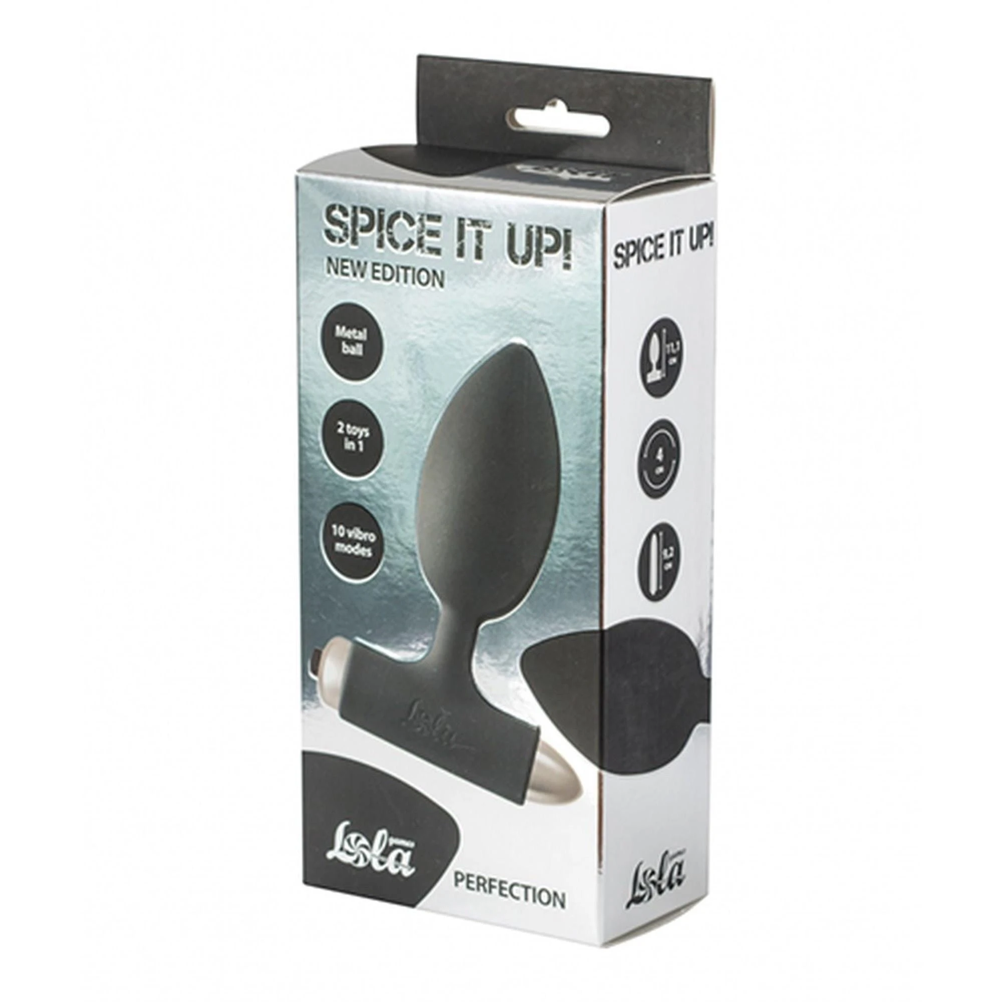 Zaślepka z wibrującą kulą Perfection ma 10 trybów wibracji, które są wygodnie przełączane za pomocą przycisku u podstawy wibrującej kuli. Stymulator analny z przesuniętym środkiem ciężkości w środku ma kulkę w plastikowym pudełku. Metalowa kula pokryta jest cienką warstwą silikonu, który zapewnia silne wibracje bez hałasu, gdy kula uderza o ściany ciała. Stymulator wykonany jest z hipoalergicznego silikonu, który nie tylko długo się utrzymuje, ale także gwarantuje wysoki poziom higieny i nie powoduje problemów podczas prania. Wibropooly można używać osobno. Odpowiedni zarówno dla mężczyzn jak i kobiet. Zasilany 1 baterią AAA (brak w zestawie). Całkowita długość zabawki wynosi 11,1 cm, długość robocza wynosi 9 cm, max. średnica - 4 cm., Długość kulki wibrującej - 9,2 cm., średnica - 1,7 cm.