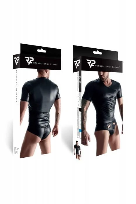 Z przodu zastosowano dyskretne, ukryte wycięcie z dostępem do klatki piersiowej, które otwiera możliwości zmysłowych gier i nadaje koszulce prowokującego, ale wciąż eleganckiego wyrazu. Elastyczna i sprężysta tkanina zapewnia wysoki komfort noszenia, swobodę ruchów oraz idealne dopasowanie. Wzmacniające przeszycia podnoszą trwałość i estetykę wykończenia.