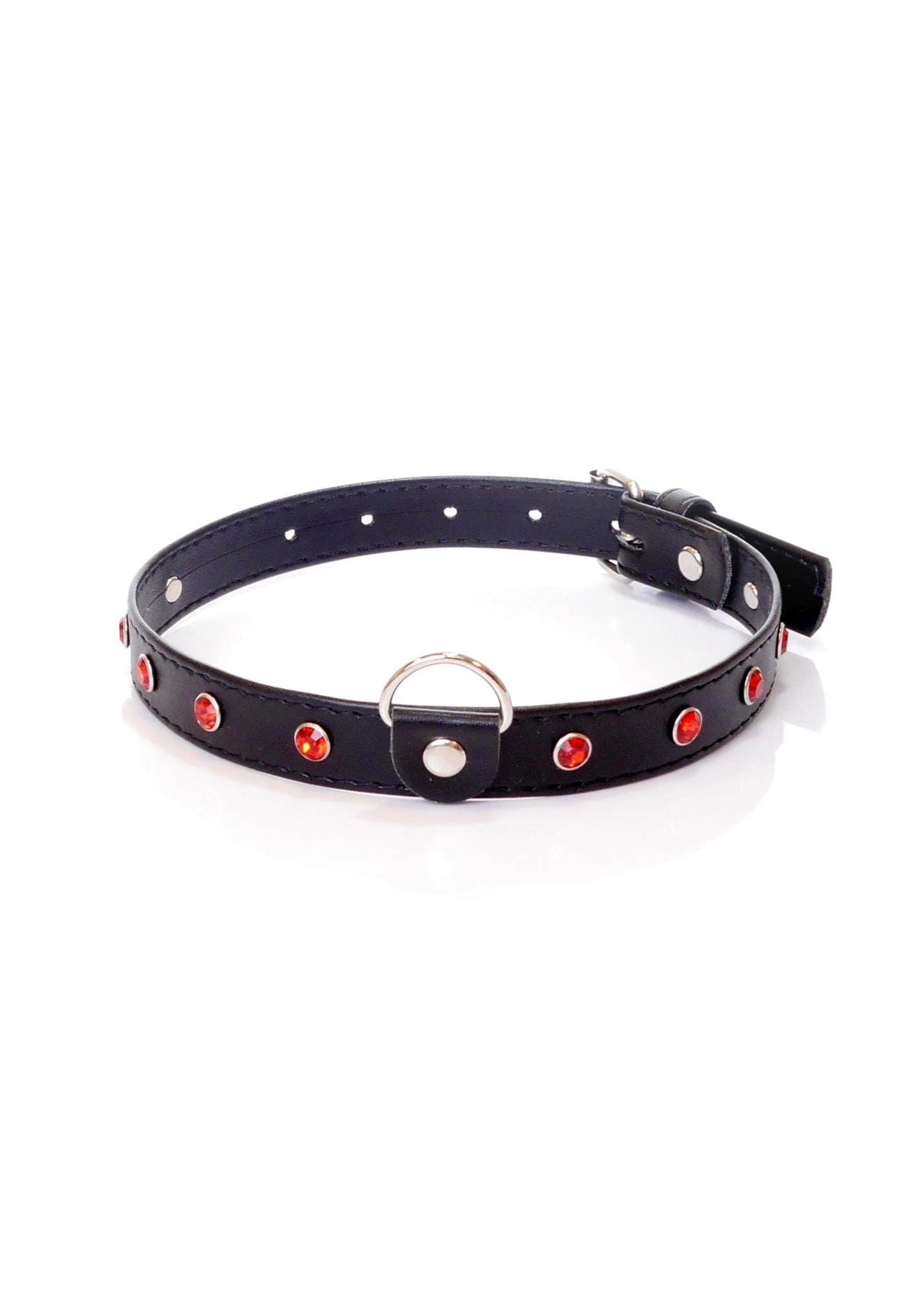 Wyrazista i pełna pasji obroża, ozdobiona czerwonymi kryształkami, które przyciągają spojrzenia i podkreślają dominujący charakter stylizacji. Wykonana z wysokiej jakości skóry ekologicznej, jest przyjemna w dotyku i komfortowa w noszeniu, nawet podczas dłuższej zabawy.