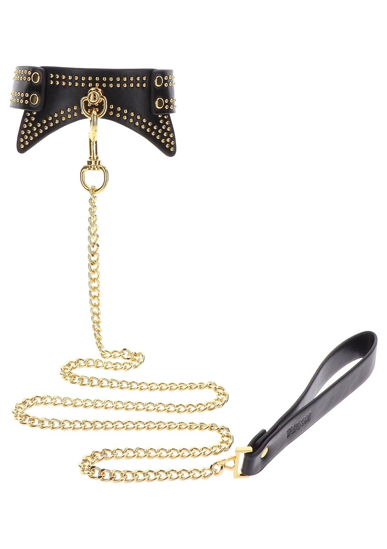 Obroża i smycz TABOOM została zaprojektowana dla tych, którzy chcą odkrywać niewolę i BDSM w niezrównanym stylu. Ten urzekający zestaw zawiera elegancką czarną obrożę ozdobioną luksusowymi złotymi ćwiekami, emanującą aurą zmysłowości, wyrafinowania i powabu. Wykonany z super miękkiej wegańskiej skóry PU, ten kołnierz zapewnia komfort intymnej powściągliwości. Pozwól swojemu partnerowi chodzić wokół ciebie lub odkrywać nowe, niegrzeczne doświadczenia, które rozpalą twoje pasje jak nigdy dotąd. Oferuje bezpieczne i regulowane dopasowanie do różnych rozmiarów szyi, zapewniając satysfakcjonujące wrażenia dla wszystkich. Obejmij sztukę zniewolenia w sposób, który uosabia wdzięk i urok dzięki temu zestawowi obroży i smyczy TABOOM.