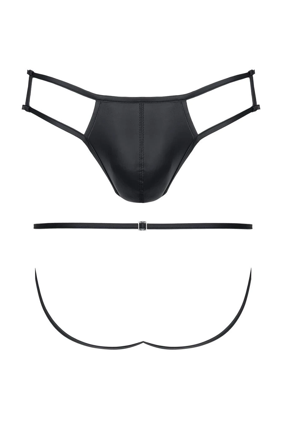 Męskie stringi z efektem wetlook i otwartym tyłem XXL