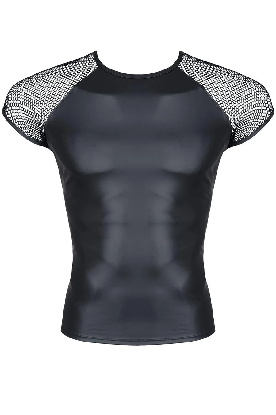 Opis produktu: koszulka z elastycznej ekoskóry oraz ramionach z elastycznej siateczki / wygodna i miła w dotyku / wzmacniające przeszycia 95% polyester / 5% elastane