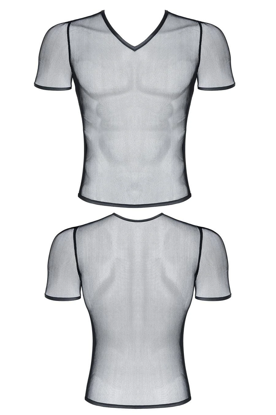 Opis produktu: koszulka w serek z elastycznej i miłej w dotyku siateczki / brzegi z tasiemki wykonanej z ekosóry / transparentna - ukazuje detale ciała / wzmacniające przeszycia 92% polyamide / 8% elastane