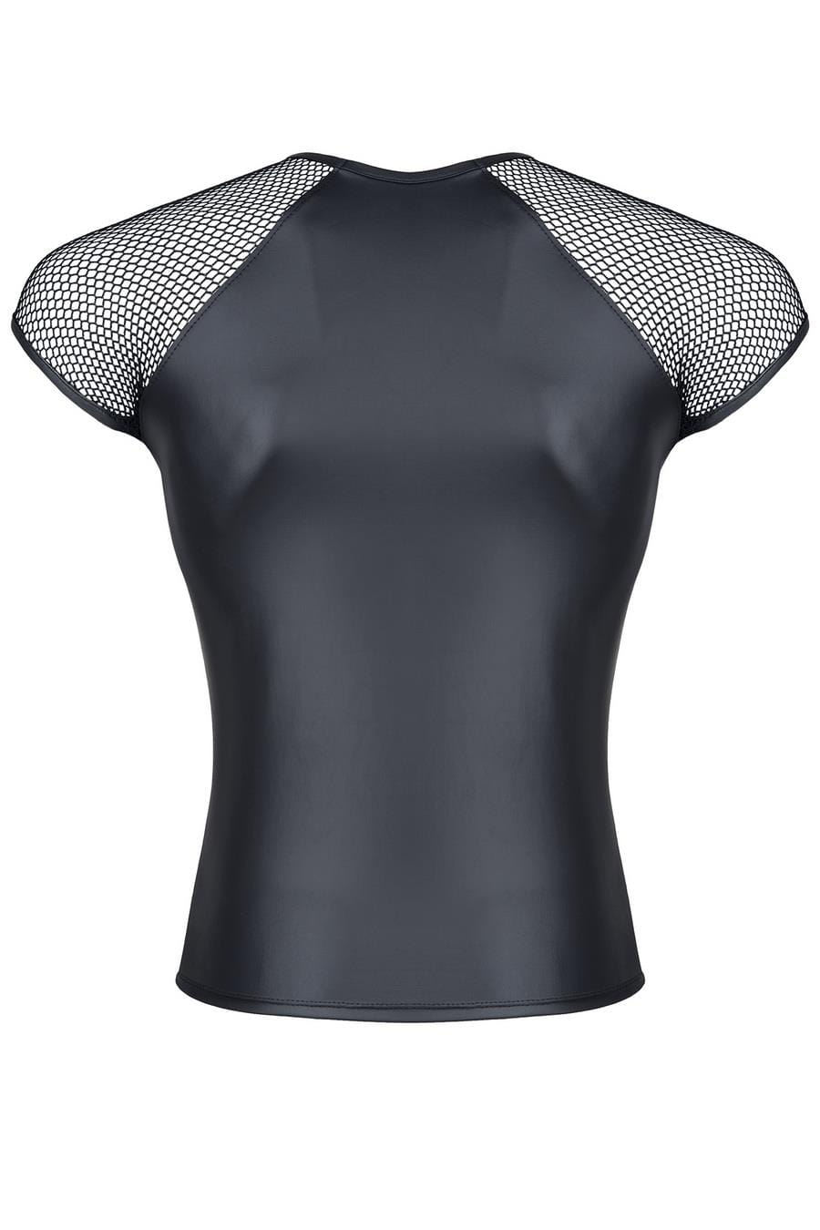 Opis produktu: koszulka z elastycznej ekoskóry oraz ramionach z elastycznej siateczki / wygodna i miła w dotyku / wzmacniające przeszycia 95% polyester / 5% elastane